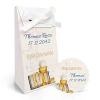 SCATOLINA PORTA CONFETTI COMUNIONE E TAG Ferdinando Famà modello FBUSTAG-0008