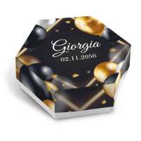 SCATOLINA ESAGONALE PORTA CONFETTI 18 ANNI in cartoncino mono patinato alto spessore. Altissima qualità. - Modello cod: FES-5010