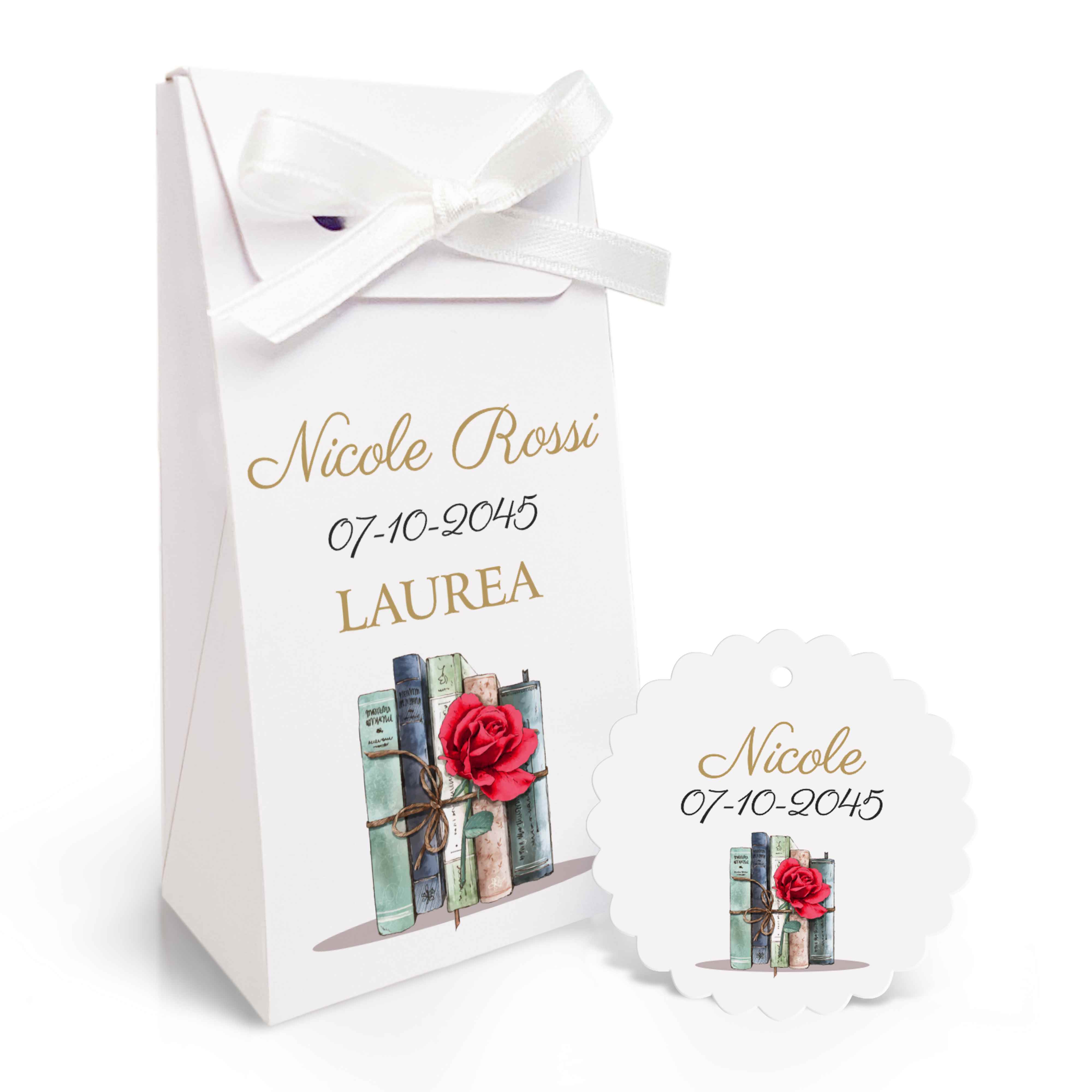 SCATOLINA PORTA CONFETTI LAUREA E TAG Ferdinando Famà modello FBUSTAG-3010