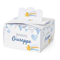 SCATOLINA PORTA CONFETTI NASCITA in cartoncino mono patinato alto spessore. Altissima qualità. - Modello cod: FBOX2-2005