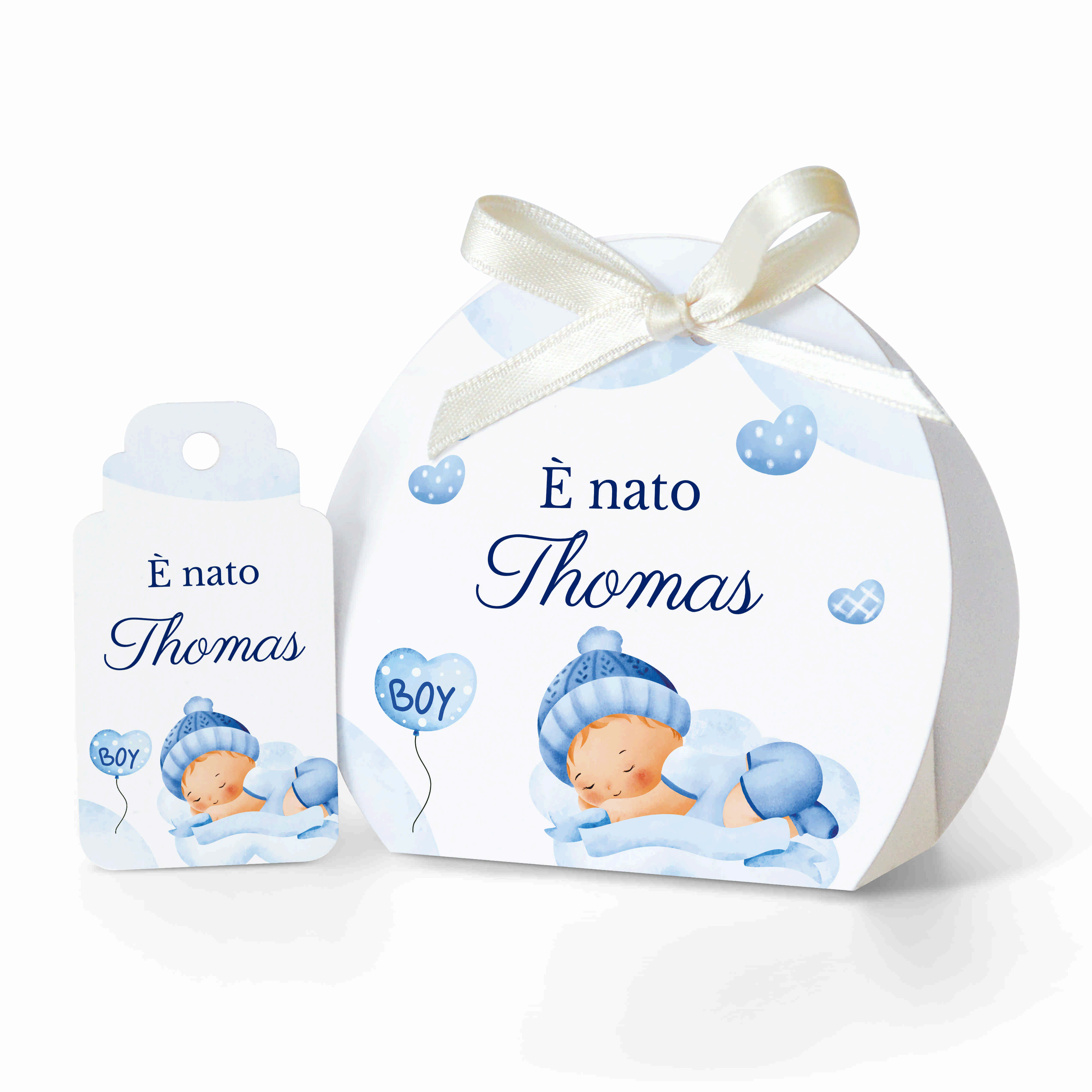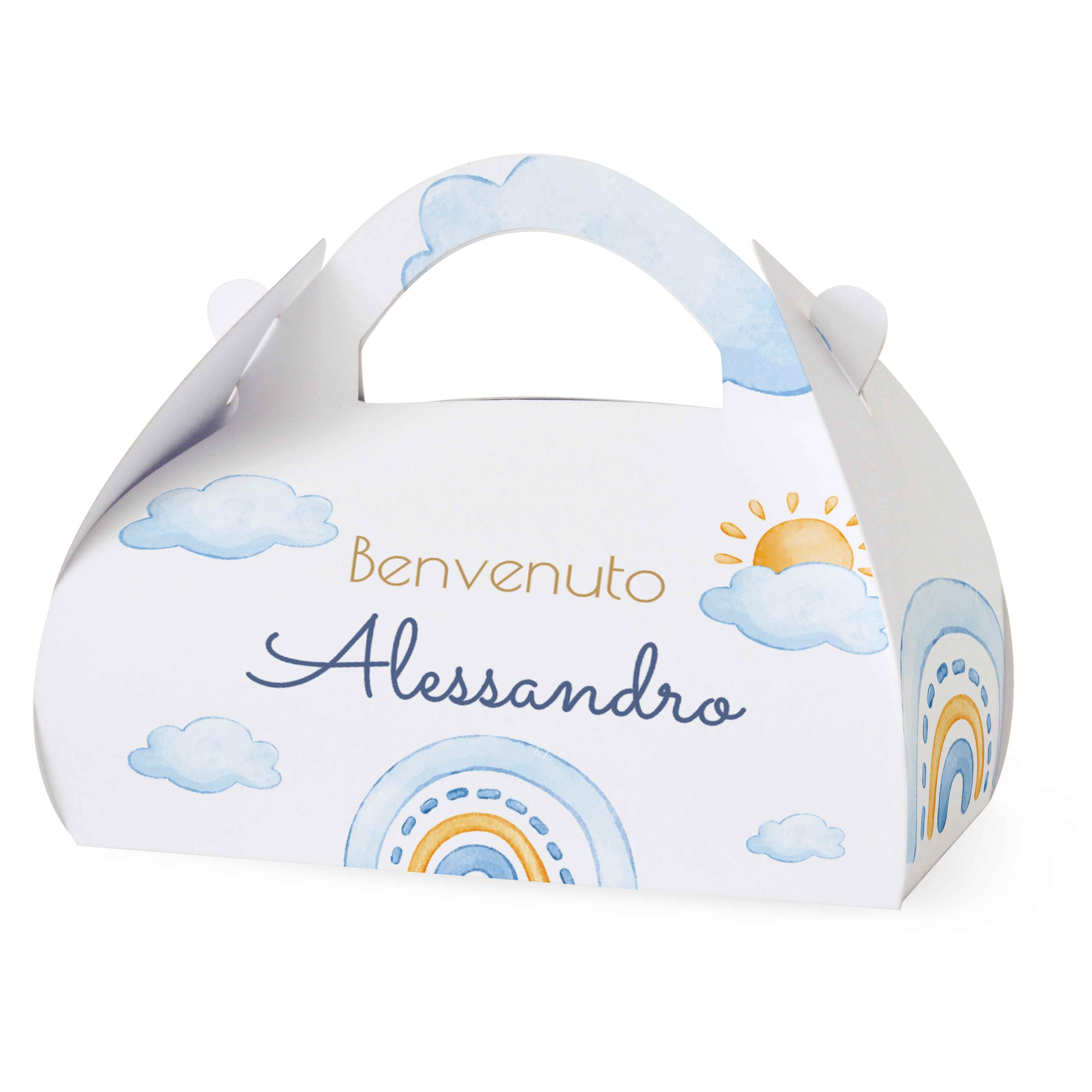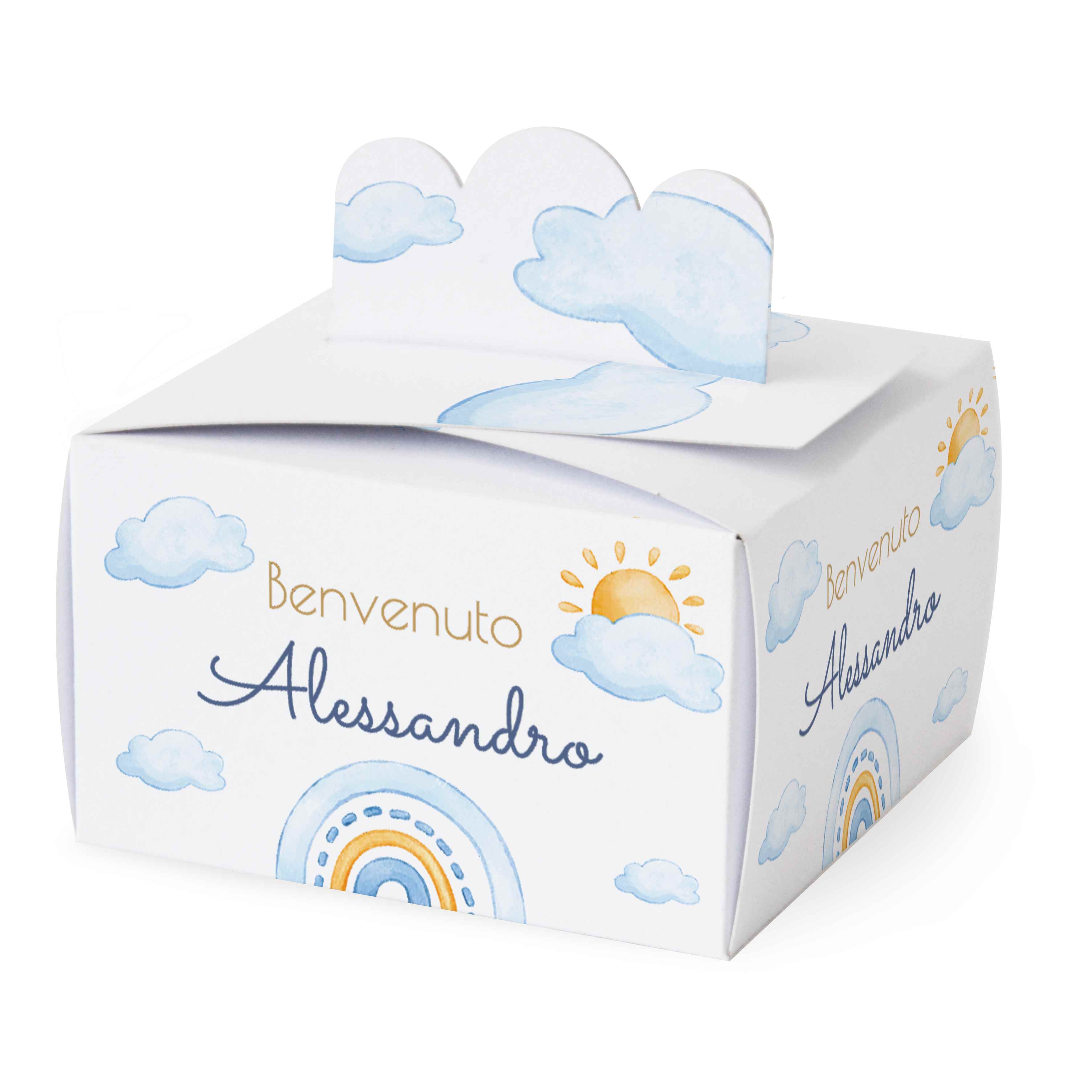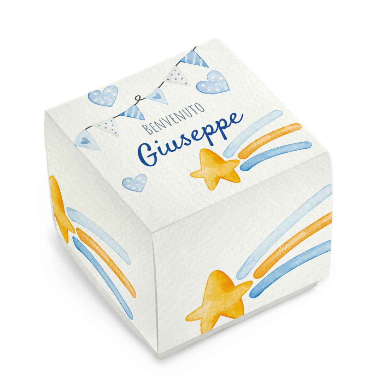 SCATOLINA PORTA CONFETTI NASCITA in cartoncino mono patinato alto spessore. Altissima qualità. - Modello cod: FBOX3-2013