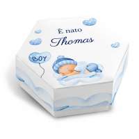 SCATOLINA ESAGONALE PORTA CONFETTI NASCITA in cartoncino mono patinato alto spessore. Altissima qualità. - Modello cod: FES-2029
