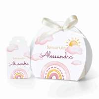SCATOLINA PORTA CONFETTI NASCITA ROSA E TAG in cartoncino mono patinato alto spessore. Altissima qualità. - Modello cod: FBOXTAG2008