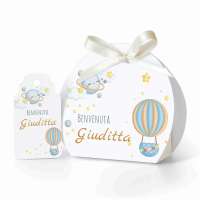SCATOLINA PORTA CONFETTI NASCITA CELESTE E TAG in cartoncino mono patinato alto spessore. Altissima qualità. - Modello cod: FBOXTAG2009