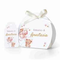 SCATOLINA PORTA CONFETTI NASCITA ROSA E TAG in cartoncino mono patinato alto spessore. Altissima qualità. - Modello cod: FBOXTAG2014
