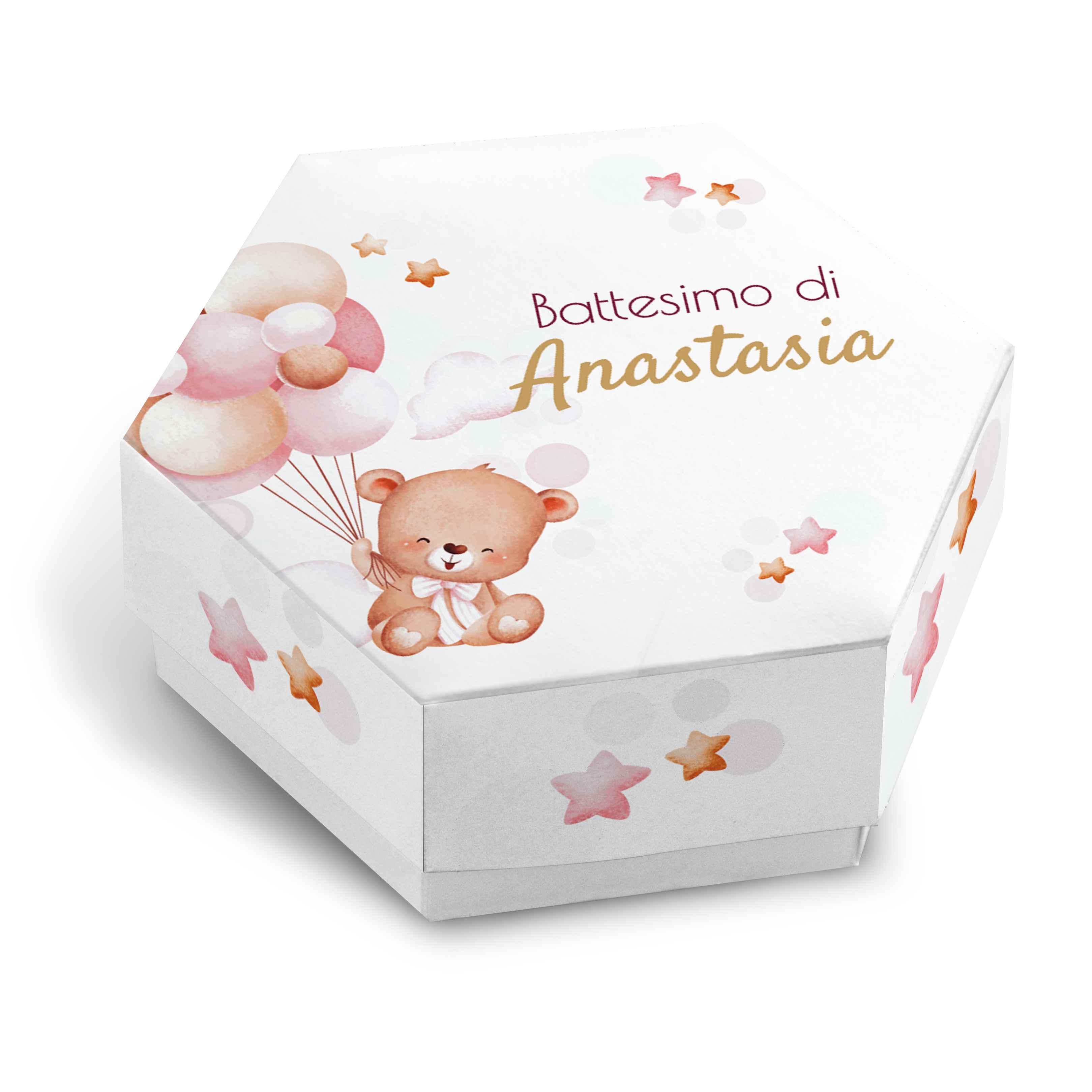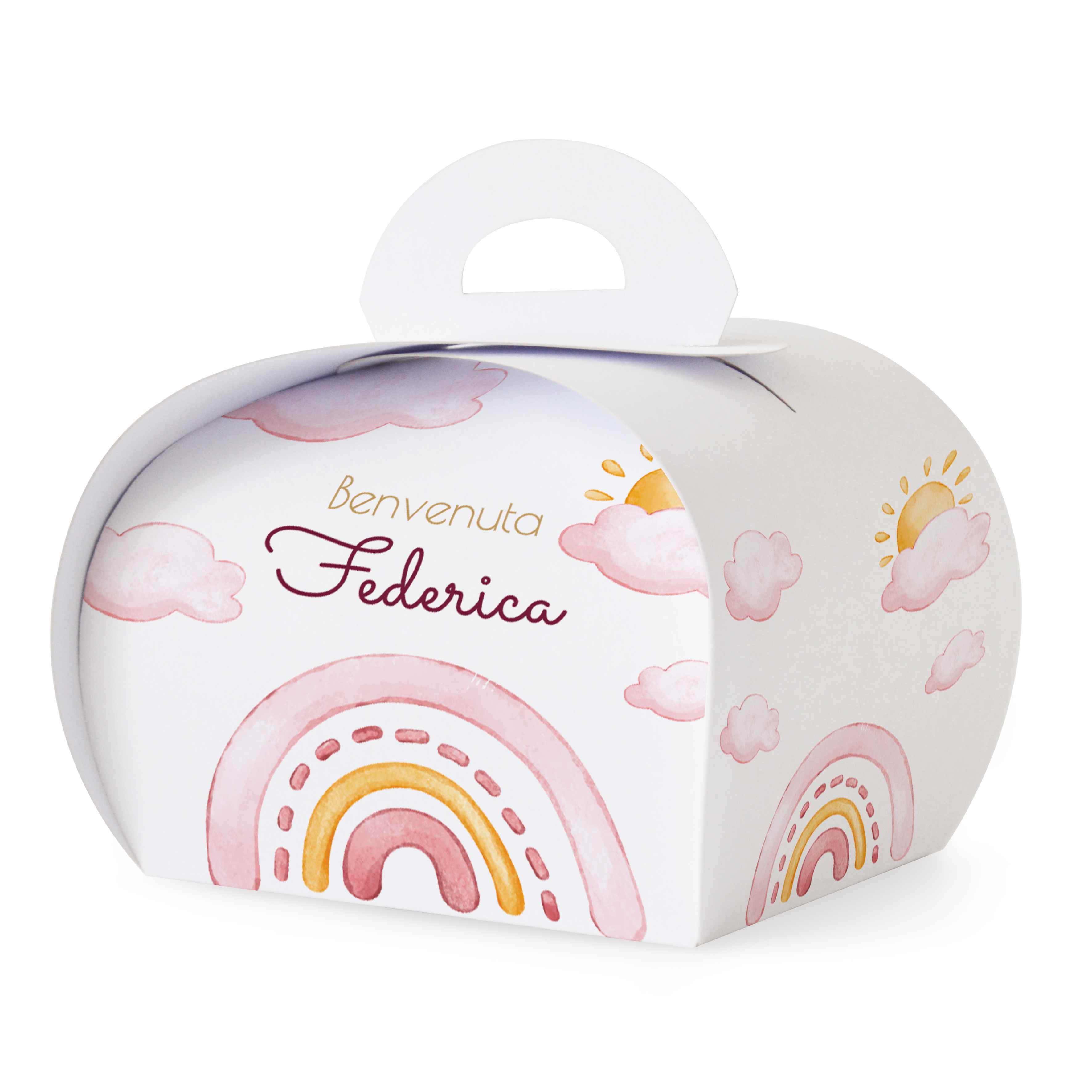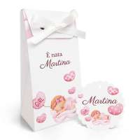 SCATOLINA PORTA CONFETTI NASCITA E TAG in cartoncino mono patinato alto spessore. Altissima qualità. - Modello cod: FBUSTAG-2012