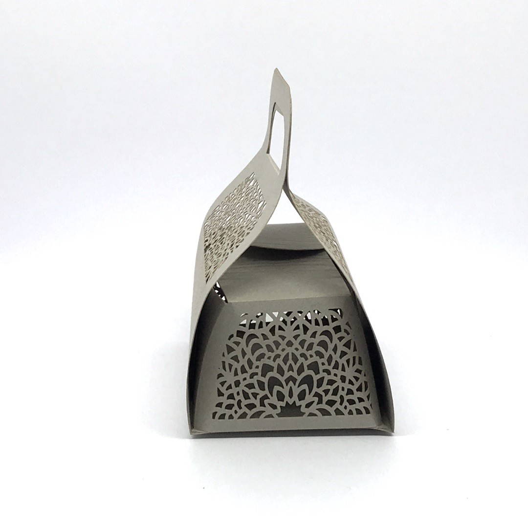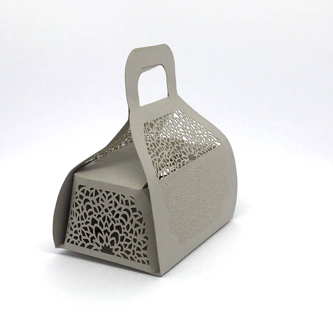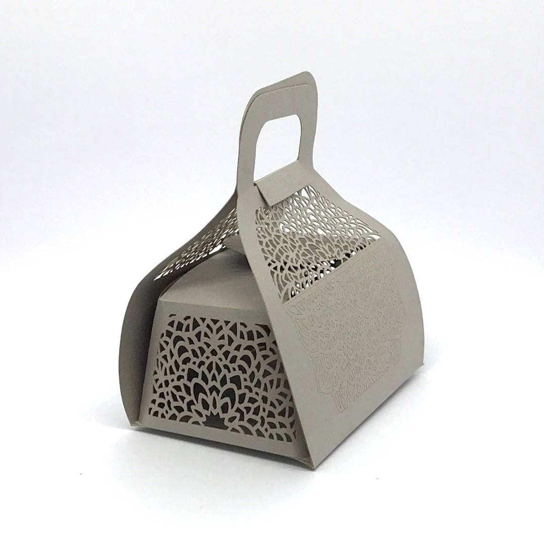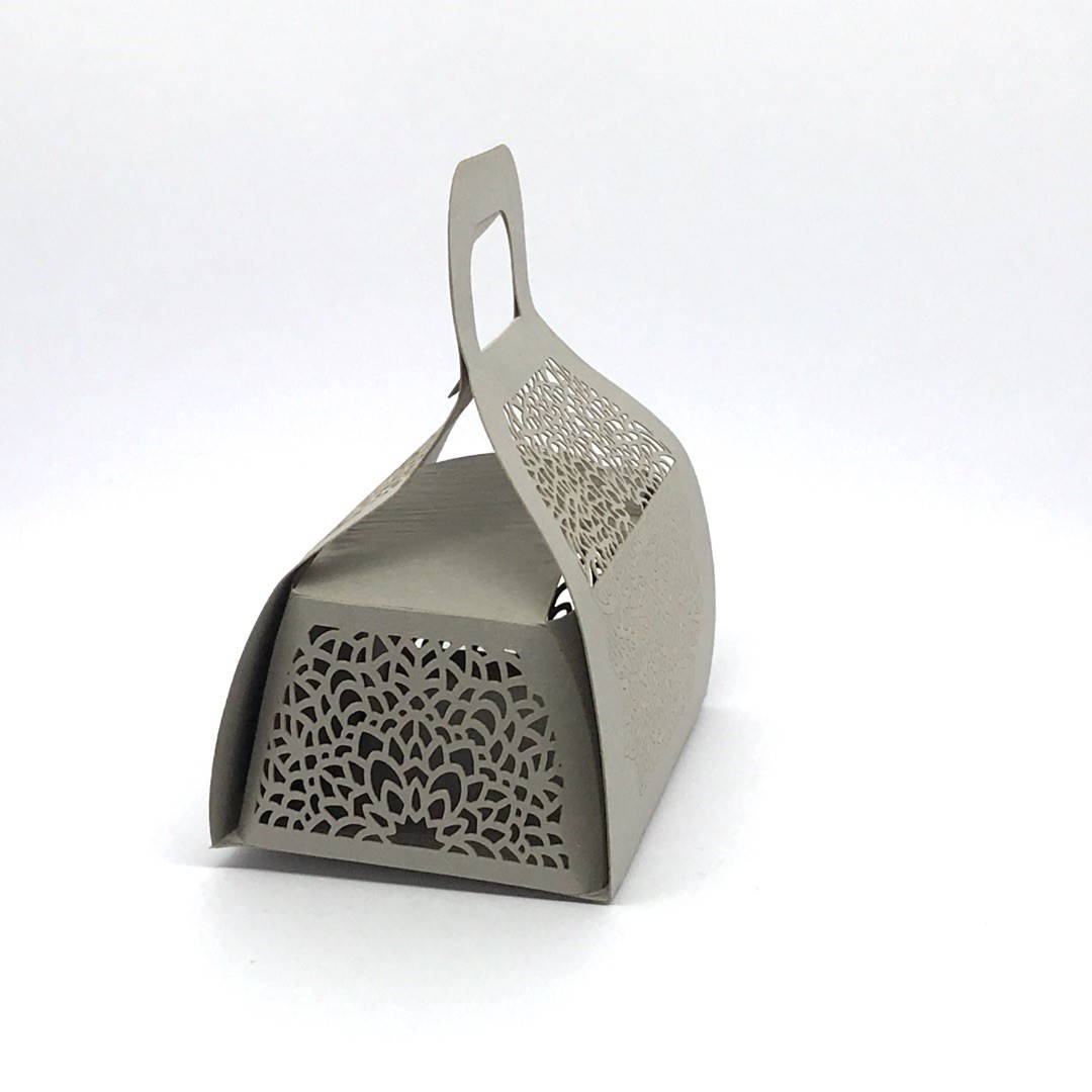 Scatolina in carta sabbia opaca con decoro barocco a taglio laser su parte dei laterali del prodotto