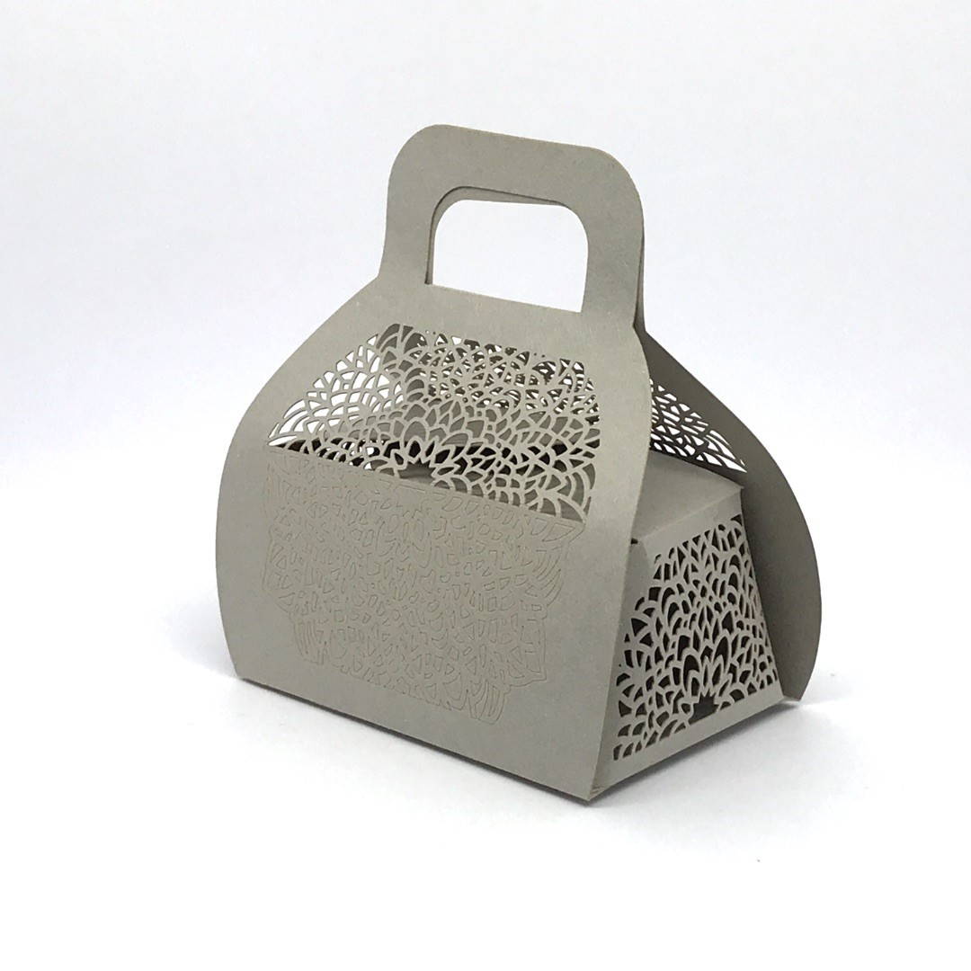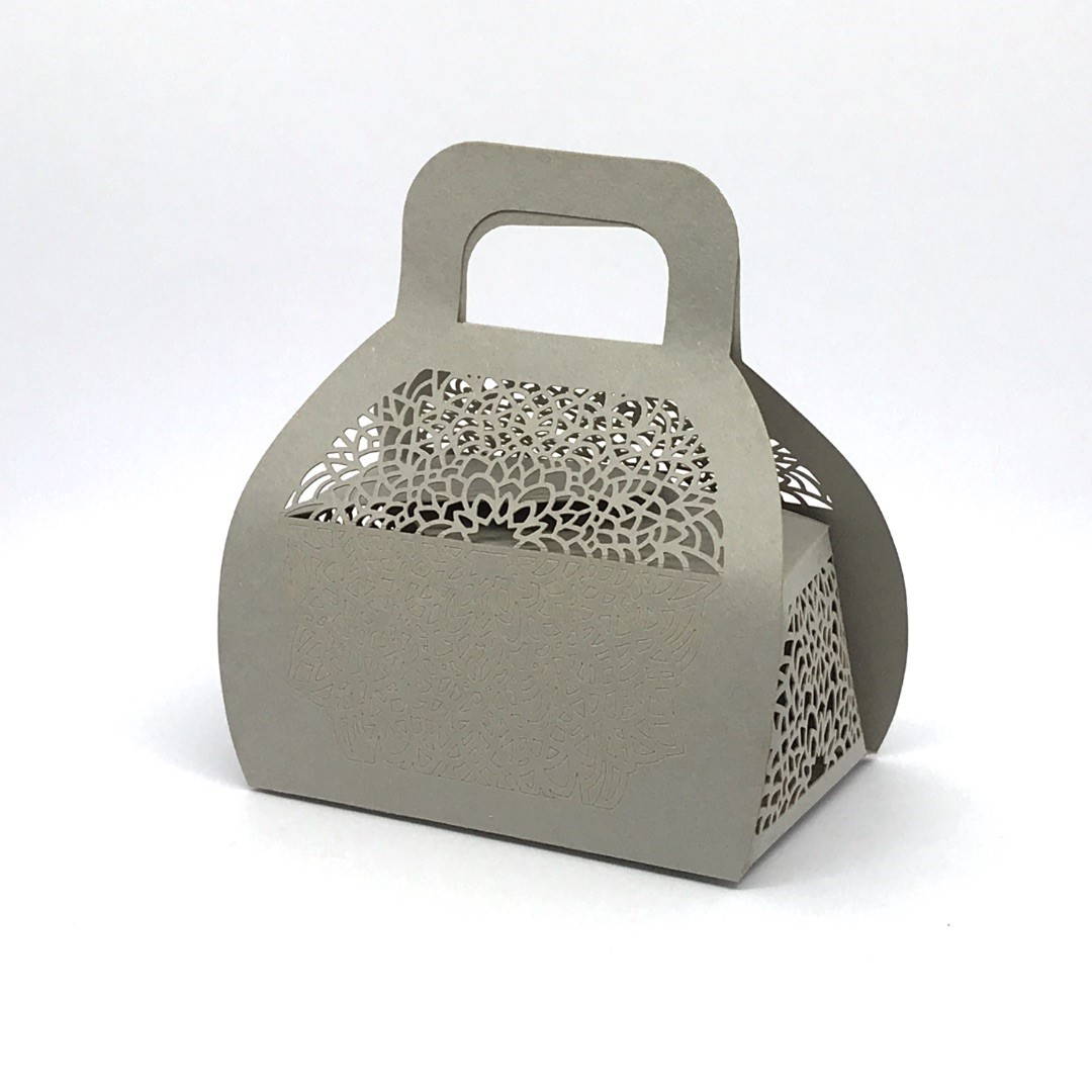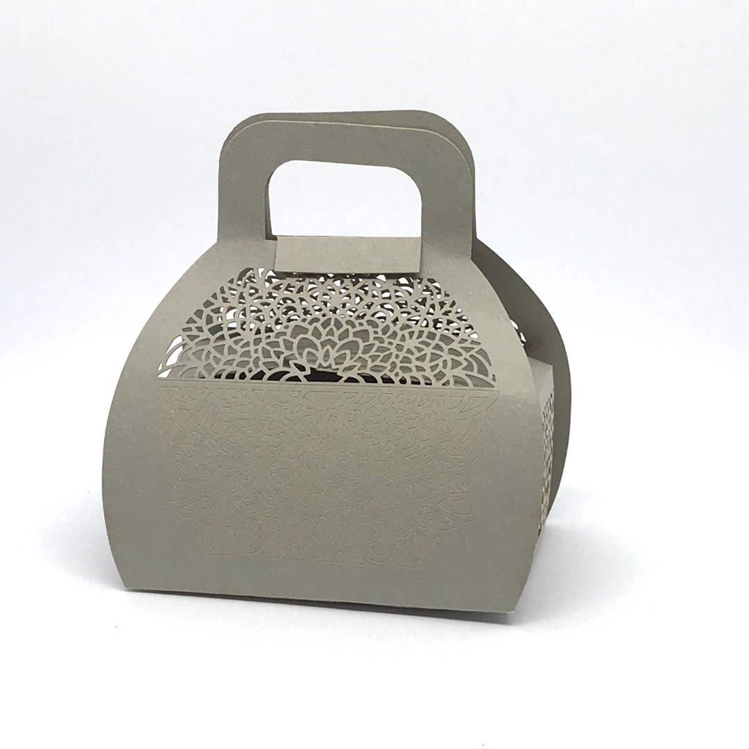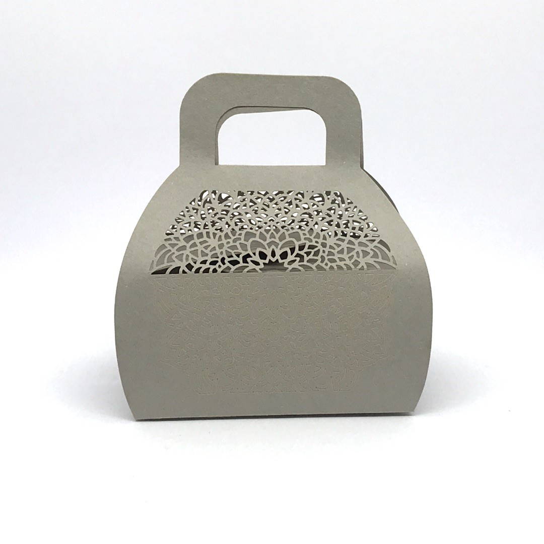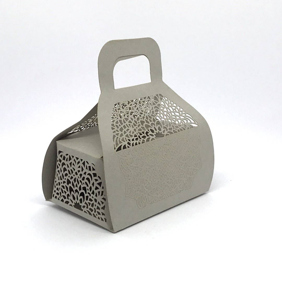 Scatolina in carta sabbia opaca con decoro barocco a taglio laser su parte dei laterali del prodotto