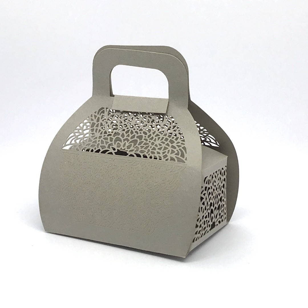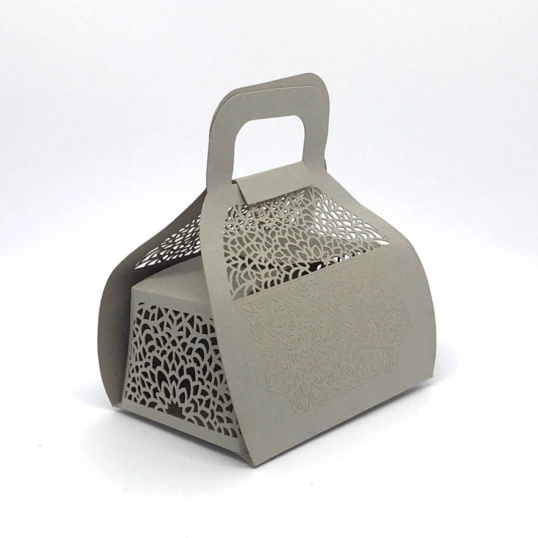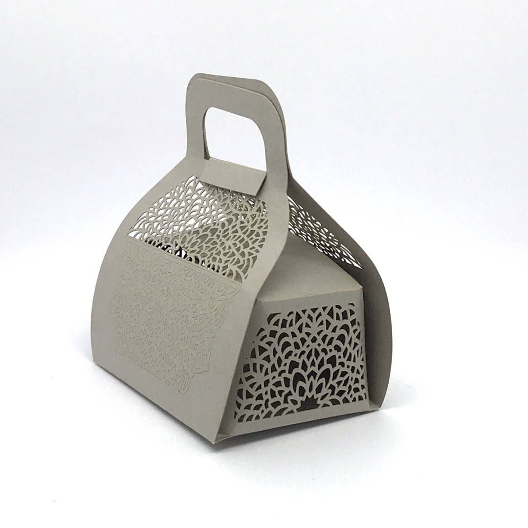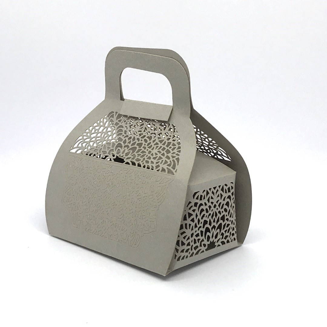 Scatolina in carta sabbia opaca con decoro barocco a taglio laser su parte dei laterali del prodotto