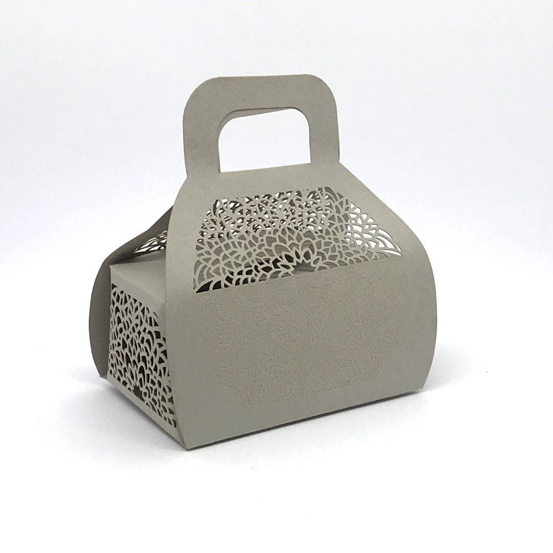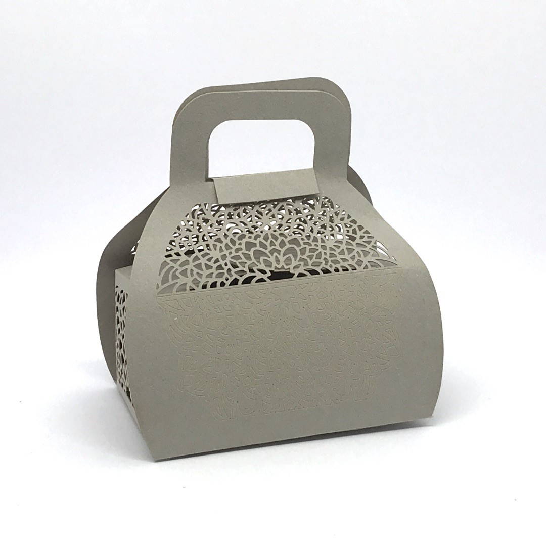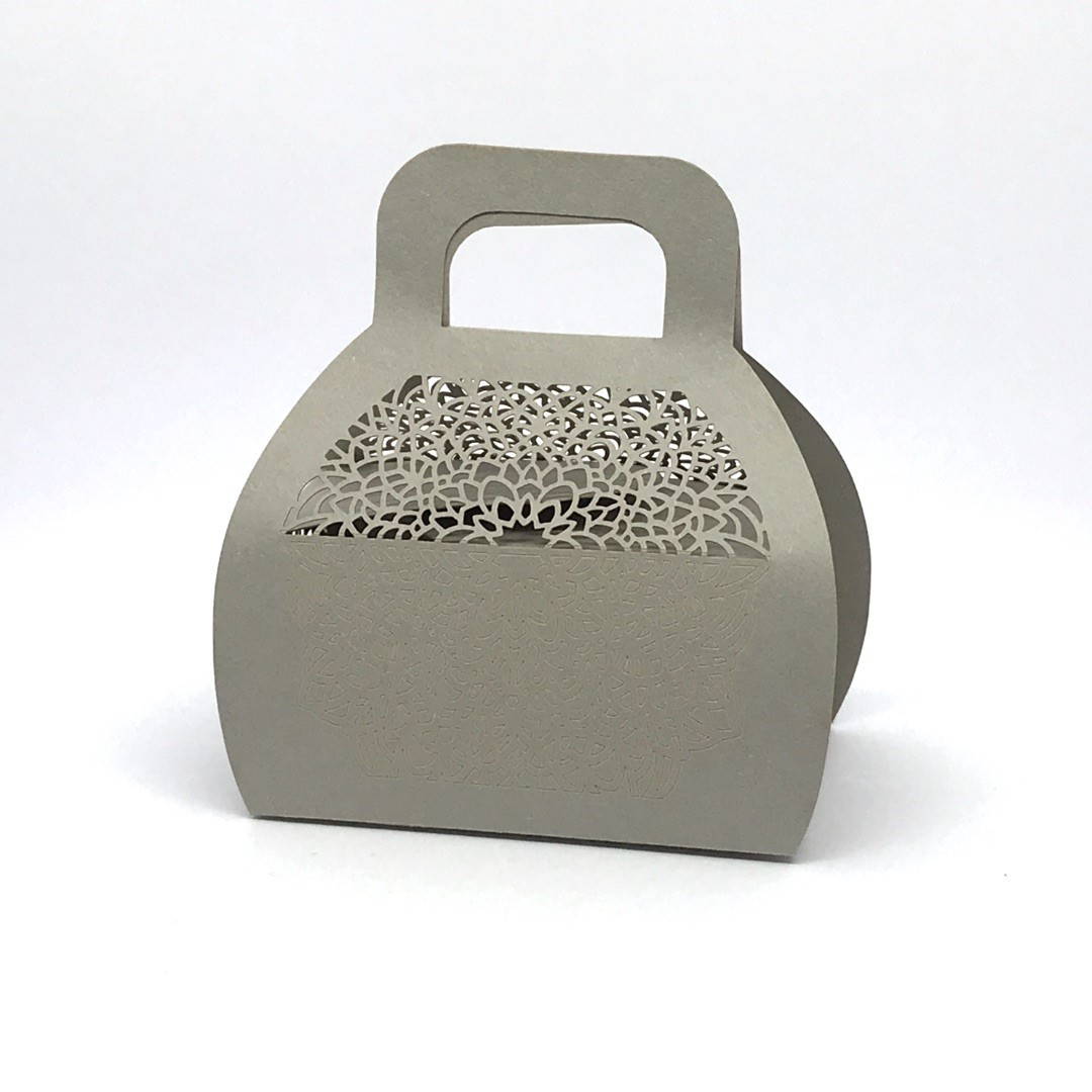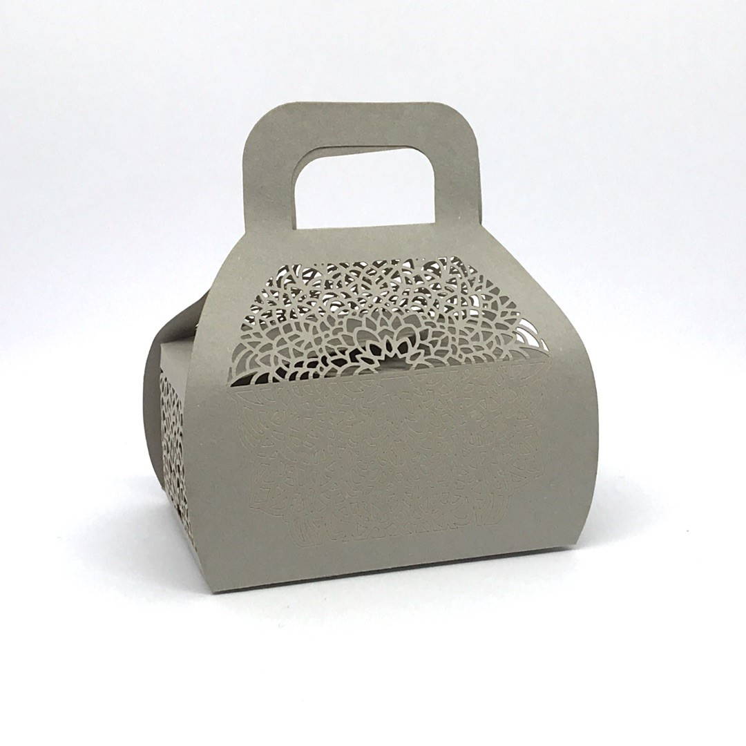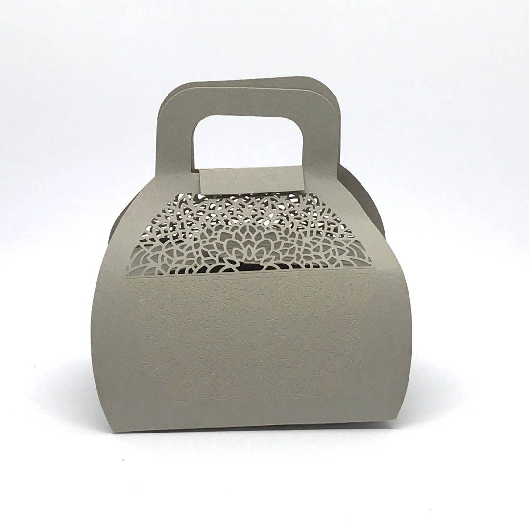 Scatolina in carta sabbia opaca con decoro barocco a taglio laser su parte dei laterali del prodotto