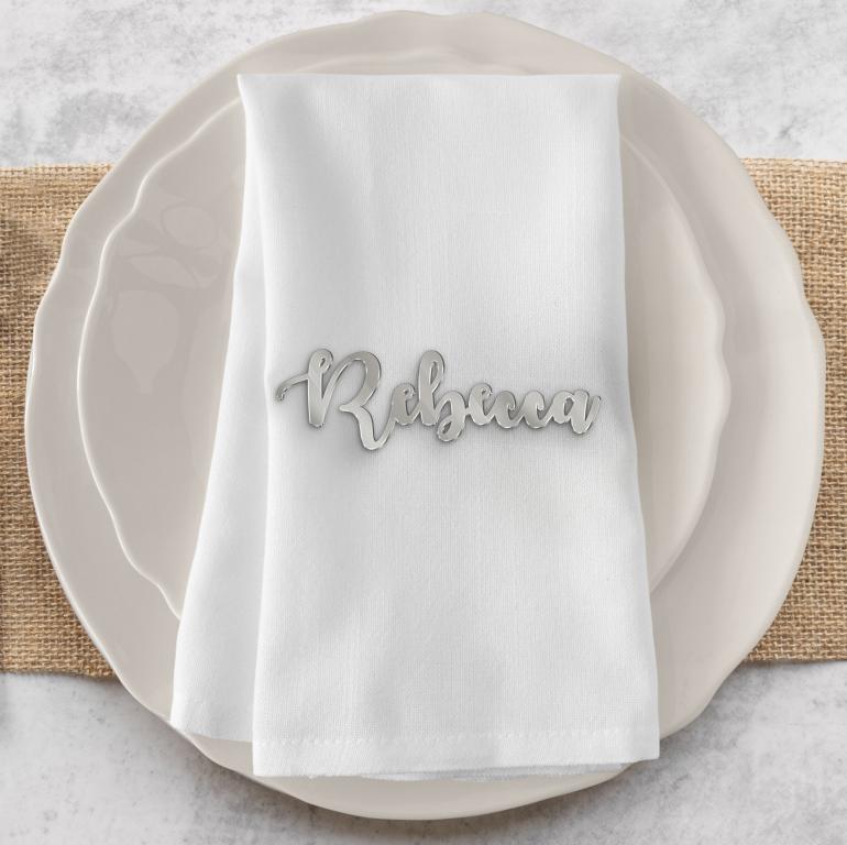 Segnaposto con nome personalizzato intagliato al laser intagliato in plexiglass argento
