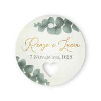 Tag tondo con cuore fustellato realizzato con cartoncino martellato modigliani neve. Stampa greenery.
